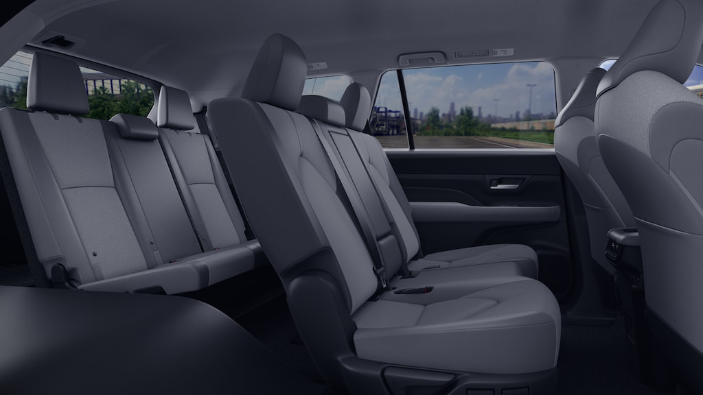 - 8-passenger seating with 60/40 split, sliding and reclining fold-down second-row bench seats; 60/40 split, fold-down third-row seats with sliding headrests and recline function.