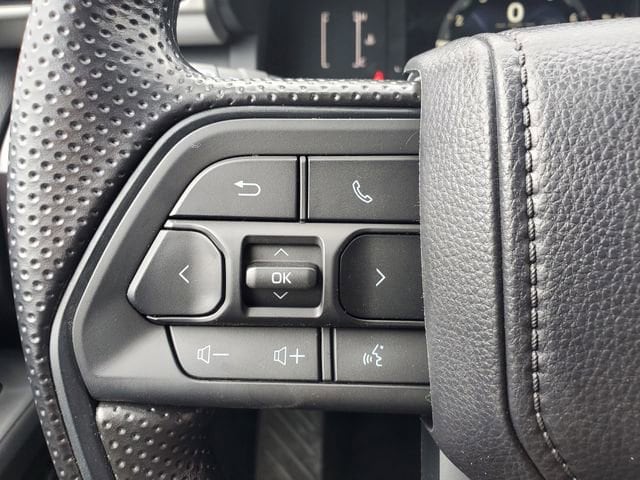 - Polyurethane manual tilt/telescopic steering wheel with phone, audio, display/infotainment, and driver assist controls.