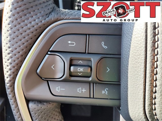 - Polyurethane manual tilt/telescopic steering wheel with phone, audio, display/infotainment, and driver assist controls.